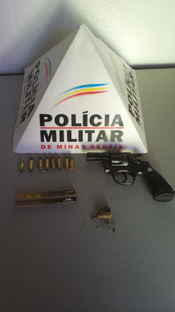 mesmo procedeu busca pessoal para averiguação. No interior de sua mochila foram localizadas três munições calibre 32 e continuadas as diligências foi localizado em sua residência, localizada na rua Ferreira Leite, um revolver calibre 32 e mais cinco munições, assim como uma bucha de maconha. O autor foi preso em flagrante delito e conduzido para a Delegacia na cidade de Muriaé.