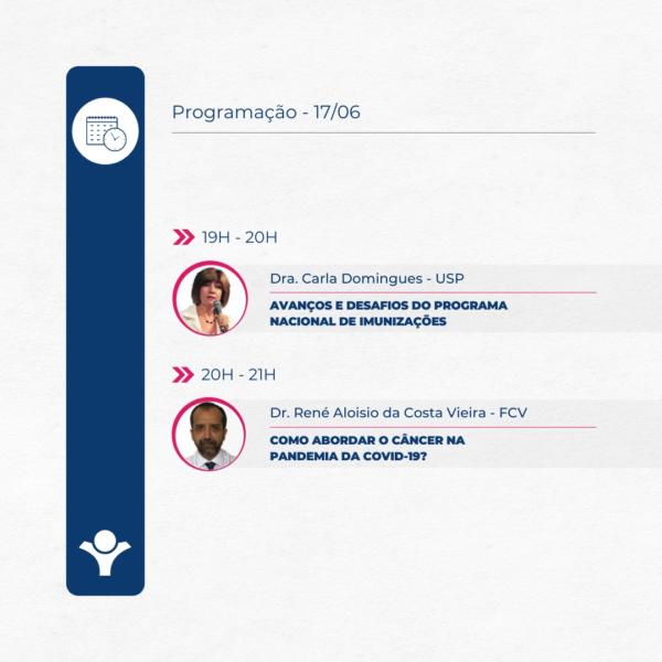 • 19h – Avanços e Desafios do Programa Nacional de Imunizações – Dra. Carla Domingues (USP)