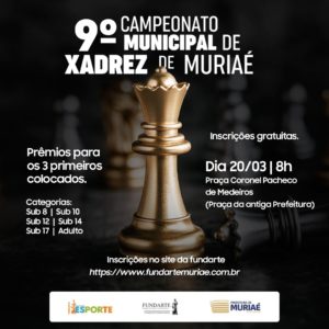 O evento é uma realização do Setor de Esportes da Fundarte (Prefeitura Municipal) com o apoio do Clube de Xadrez de Muriaé.