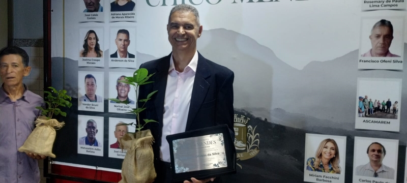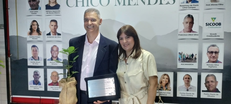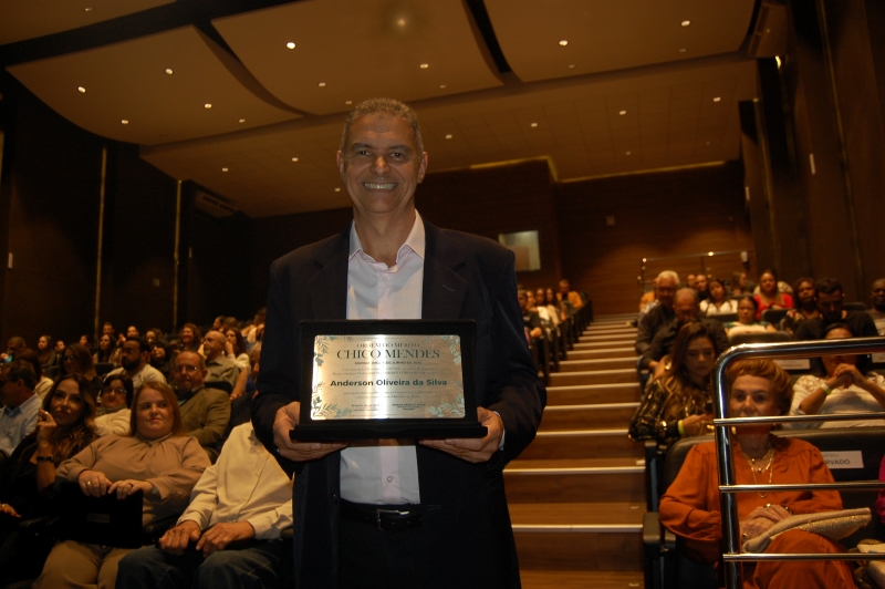 Na noite desta quarta-feira (4), Anderson Oliveira da Silva foi homenageado com a outorga da Ordem do Mérito Chico Mendes, em reconhecimento à sua atuação voltada à preservação ambiental. A indicação foi feita pelo vereador Afonso da Saúde, durante cerimônia promovida pela Câmara Municipal de Muriaé, no auditório do Centro Universitário FAMINAS.