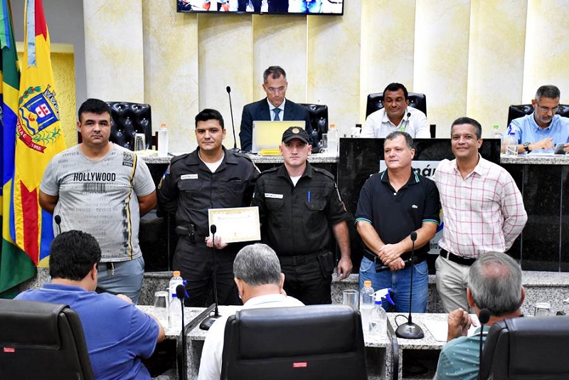 Foram congratulados com Moções o prefeito e um representante da PM-RJ