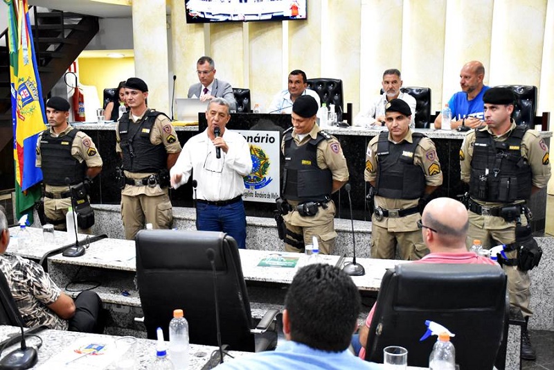 O vereador Devail (PP) reconheceu por meio das moções, a atenção de todo o efetivo da Polícia Militar de Muriaé no policiamento da 12ª Expofest do distrito de Vermelho, promovendo a segurança e auxiliando na garantia da paz social aos participantes e moradores desta comunidade. Estiveram na sessão o Major Sandro, os sargentos Gomes e Ronaldo e os cabos Cireli e Alves, que representaram todos os agraciados.