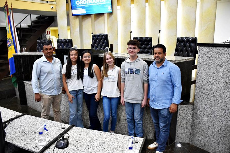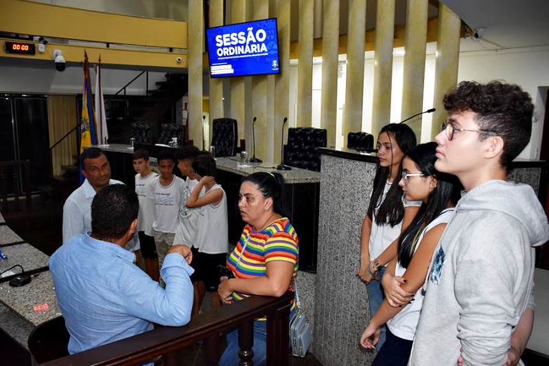 E como tem se tornado cotidiano, antes da sessão, o presidente Ciso, acompanhado do vereador Celsinho esta semana (o presidente sempre procura está acompanhado por um ou mais vereadores), recebeu estudantes para conversar sobre o trabalho do Legislativo municipal, explicar o que é e como funciona a Câmara e quais são as atribuições dos vereadores. Uma ação da Escola do Legislativo que mais uma vez contou com a participação dos alunos da Escola Municipal Gilberto José Tanus Braz.