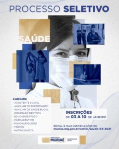 Foi publicado nesta segunda-feira, dia 27 de dezembro, o edital com as regras para o novo processo seletivo simplificado da Secretaria Municipal de Saúde de Muriaé.O prazo de inscrições será...