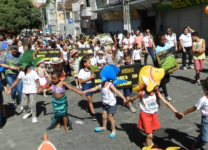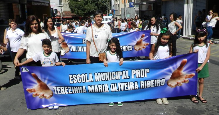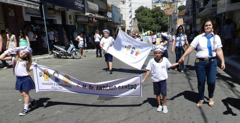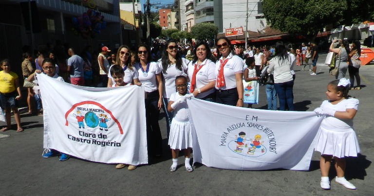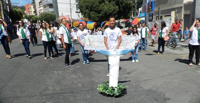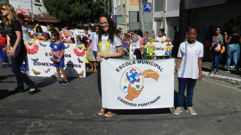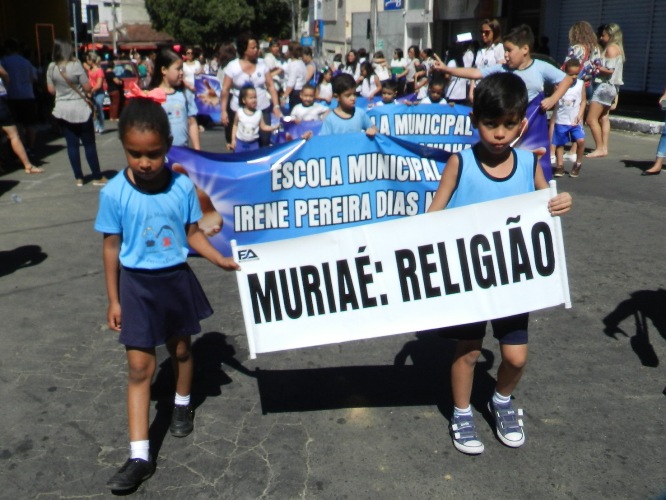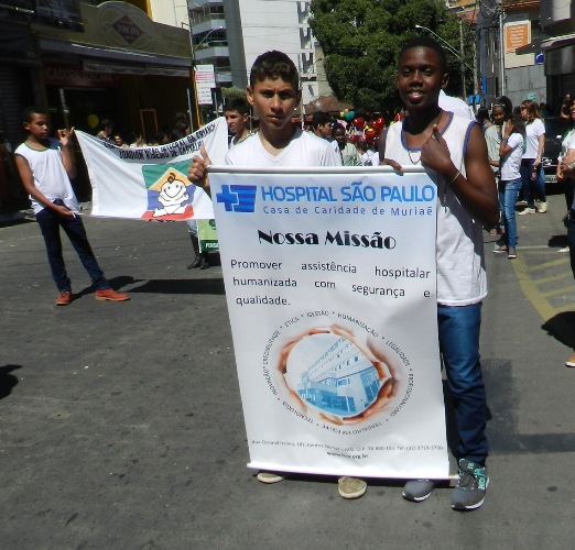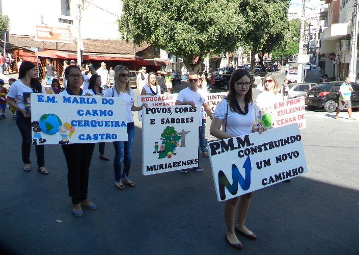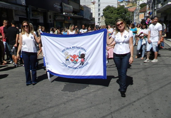 Na sequência, alunos e professores das escolas da rede pública municipal desfilaram pela rua que passa ao longo da praça, encerrando suas apresentações em frente ao Grande Hotel Muriahe, onde foi montado o palanque – um dos destaques foi a banda marcial da Escola Municipal Gilberto José Tanus Braz, que contagiou o público com versões instrumentais de sucessos nacionais e internacionais. O desfile também teve a participação de participantes e profissionais de programas sociais mantidos e/ou apoiados pela Prefeitura de Muriaé.