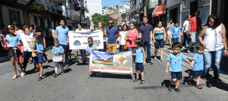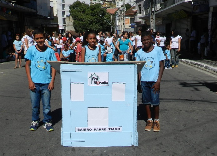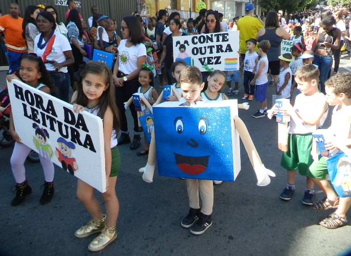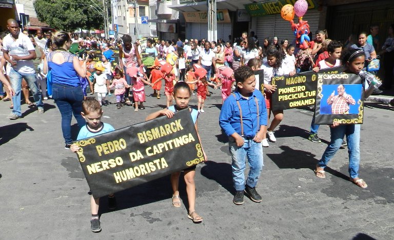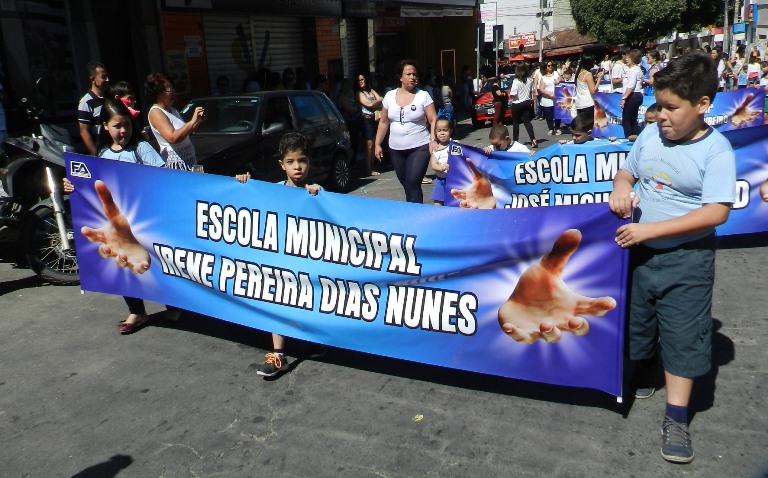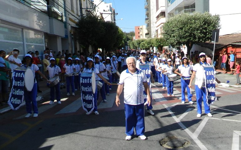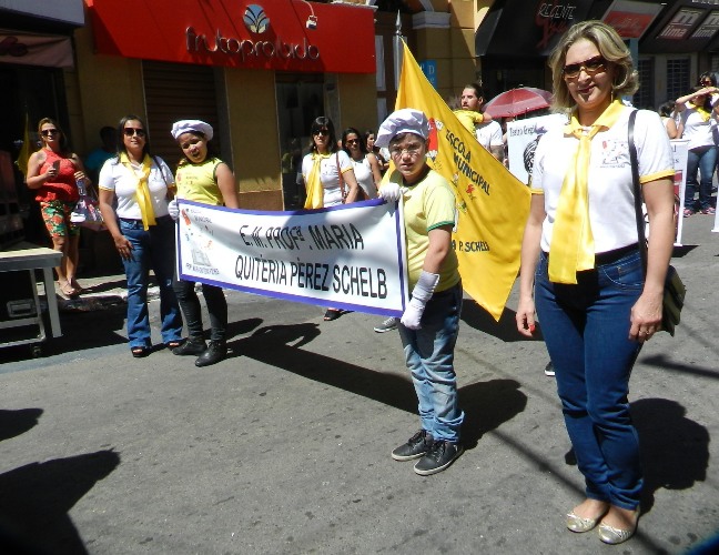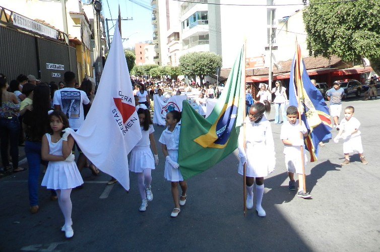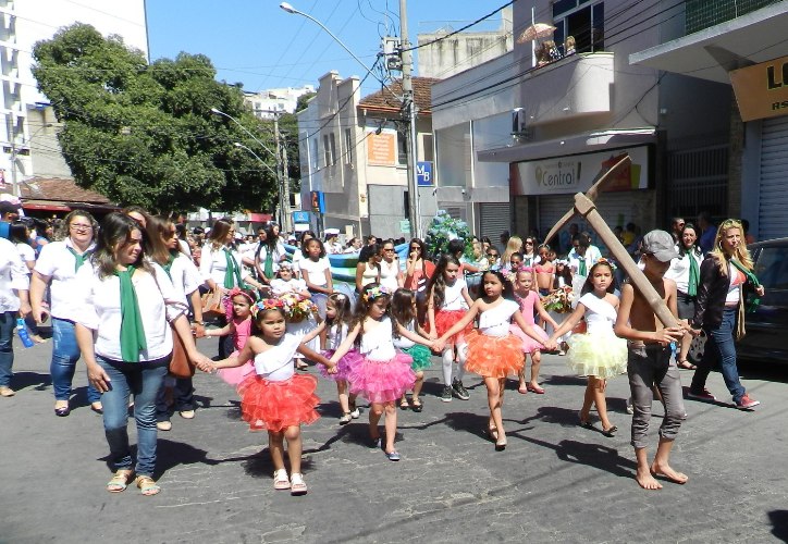 Na sequência, alunos e professores das escolas da rede pública municipal desfilaram pela rua que passa ao longo da praça, encerrando suas apresentações em frente ao Grande Hotel Muriahe, onde foi montado o palanque – um dos destaques foi a banda marcial da Escola Municipal Gilberto José Tanus Braz, que contagiou o público com versões instrumentais de sucessos nacionais e internacionais. O desfile também teve a participação de participantes e profissionais de programas sociais mantidos e/ou apoiados pela Prefeitura de Muriaé.
