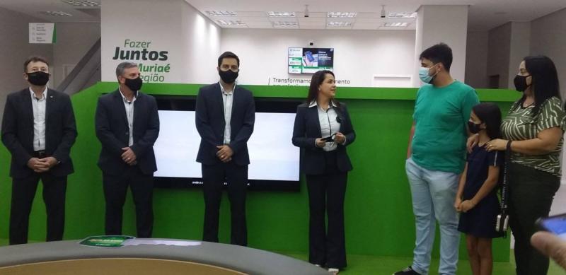 A celebração da entrega contou com a presença de Laoni da Cunha –  Gerente de Desenvolvimento de Negócios, Eduardo Gonçalves –  Gerente da Agência Barra, Jeferson Costa – Gerente do Ponto de Atendimento – Centro, Cátia da Silveira Fernandes – Gerente Regional de Desenvolvimento e com  do Ganhador do prêmio, o muriaeense  Daniel Fagundes Gomes de Oliveira,.