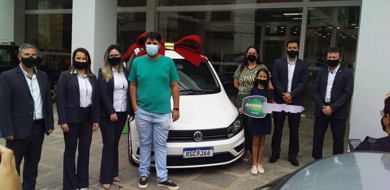 A agência do Sicredi de Muriaé fez nesta terça-feira (26|), a entrega de um dos  prêmios do sorteio “40 Anos, 40 Prêmios”: um veículo Gol, no sorteio da campanha, que foi realizado no dia 02 de outubro no Rio Grande do Sul. O ganhador foi Daniel Fagundes Gomes de Oliveira, enfermeiro, residente no Bairro Dornelas.