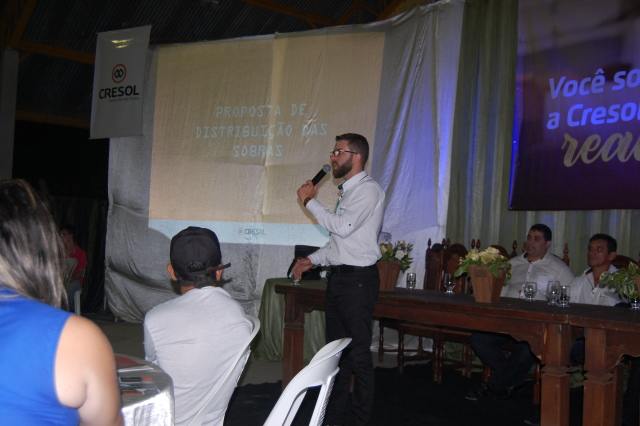 O evento contou com cooperados representando todos os municípios onde esta unidade financeira está presente: Fervedouro, Manhuaçu, Miradouro, São Francisco do Glória, Muriaé, Rosário da Limeira, Eugenópolis, Belisário e Pinhotiba, Presidente da Central Cresol Baser, Luiz Levi Tomacheski , presidente dos sindicatos dos trabalhadores Rurais de Muriaé e Miradouro, Eduardo Antônio de Alcântra e Isaias Clóvis de Freitas e demais autoridades locais e da região.Na ocasião foi realizado sorteio de brindes para os associados e servido um jantar ao som de João Paulo Voz e Violão.