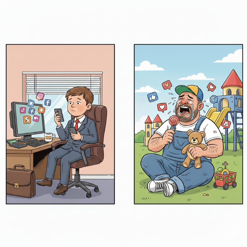 Machado de Assis disse, com bastante propriedade, que os adultos são as crianças do amanhã. E vemos, diuturnamente, personagens do mundo artístico, político ou intelectual defendendo teses totalmente absurdas que geram mais confusão mental naqueles que tentam seguir algum caminho. A maneira deselegante com que tratam os seres comuns da sociedade beira a falta de educação. Influencers brigam e discutem no YouTube como se fosse normal falar bobagens ou argumentar como crianças mimadas, privadas dos seus brinquedos favoritos; desde crianças nos acostumamos a tirar os brinquedos favoritos dos outros.