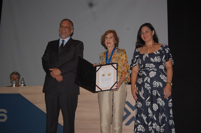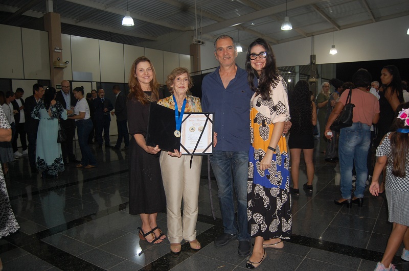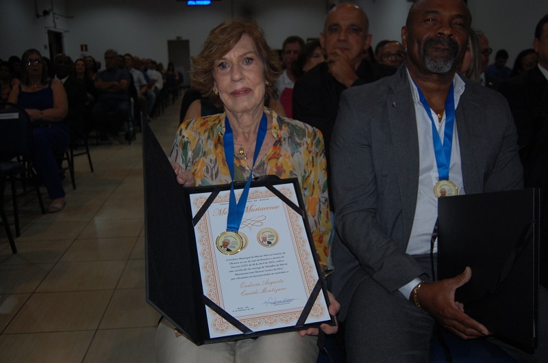 Eudóxia Augusta Canêdo Montezano, foi homengeada com a Medalha José Alencar, uma honraria concedida pelo poder público municipal muriaeense, às pessoas que prestaram relevantes serviços ao Município. O evento aconteceu no auditório da Faminas na noite desta quinta-feira (01) e reuniu centenas de pessoas.