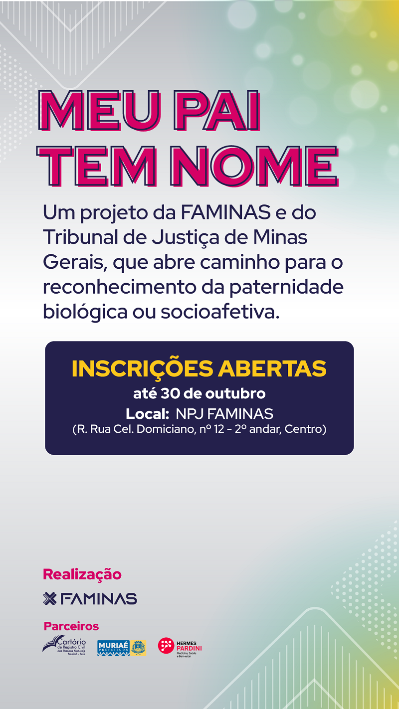 Com o objetivo de facilitar o caminho para o reconhecimento da paternidade biológica ou socioafetiva, a FAMINAS abriu inscrições para o projeto “Meu Pai tem Nome”.