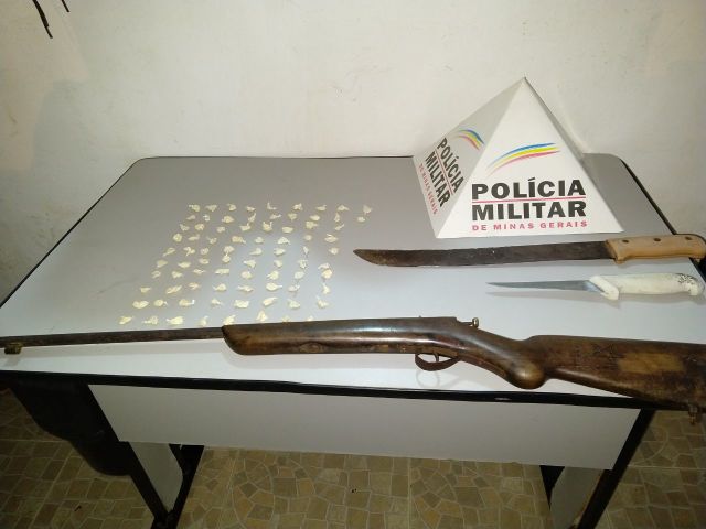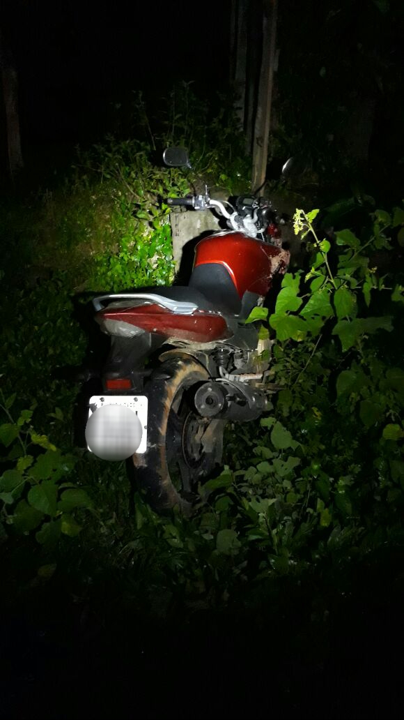 Iniciado o rastreamento os militares receberam denúncia via 190 de que havia um individuo com uma motocicleta em atitude suspeita próxima a um rio no Distrito de Itamuri. Continuada as diligências a motocicleta roubada foi localizada e a guarnição continuou as diligências em uma residência abandonada pela rua Santo Antonio, por lá a Polícia Militar localizou uma arma de fogo espingarda tipo “polveira” que estava em pé enrolada numa blusa logo na entrada da residência e mais oitenta e um papelotes de cocaína embaladas.