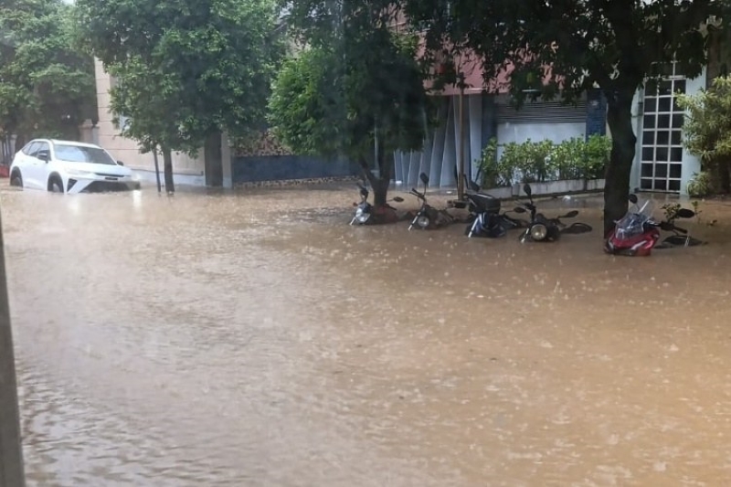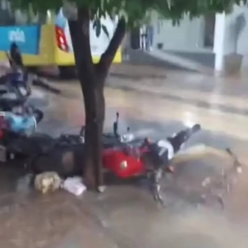Uma forte chuva atingiu a cidade de Muriaé na tarde desta terça-feira, dia 4, provocando alagamentos em diversos pontos da cidade. As regiões mais afetadas foram o Centro, especialmente a Avenida Constantino Pinto, a Rua Desembargador Canêdo e os arredores da Praça Coronel Pacheco de Medeiros, onde a água subiu rapidamente e causou transtornos a motoristas e pedestres. Moradores registraram vídeos mostrando carros parcialmente submersos e lojas sendo invadidas pela enxurrada. Até o momento, ainda não foi possível mensurar a quantidade exata de chuva, mas o volume foi suficiente para paralisar o trânsito em várias vias por alguns minutos.