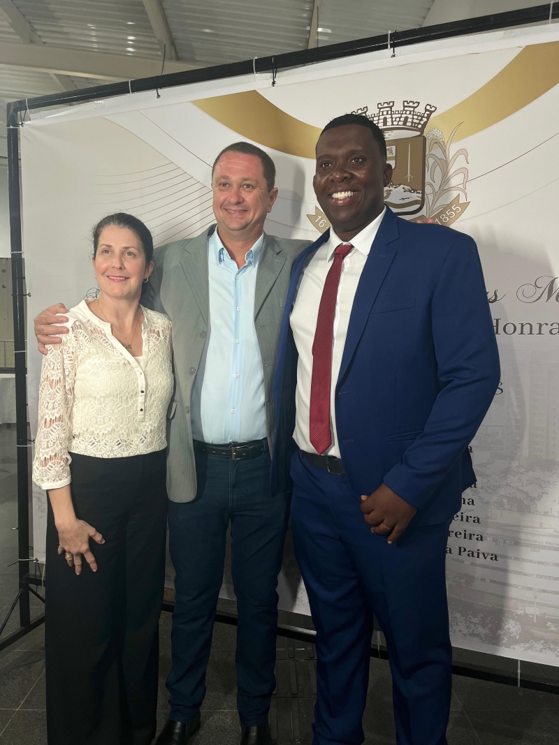 A solenidade foi presidida pelo vereador Evandro Cheroso e contou com a presença do prefeito Dr. Marcos Guarino, reforçando a importância de reconhecer publicamente aqueles que trabalham pelo bem coletivo e pela construção de um futuro melhor para Muriaé.
