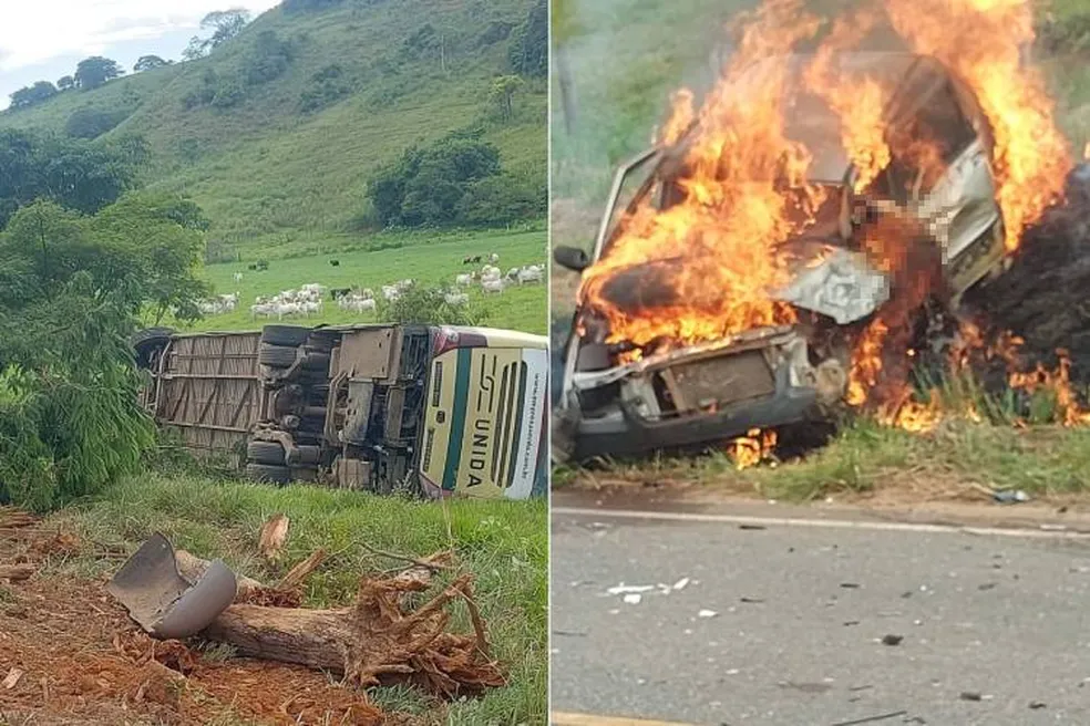 Já o ônibus, que realizava a linha Cataguases /Ubá, saiu da pista e tombou às margens da estrada.