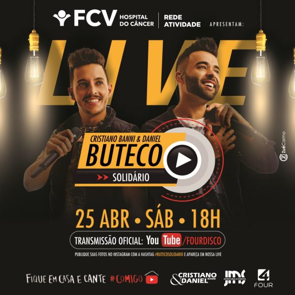 Após o sucesso da primeira live, em parceria com a Four Disco, o Hospital do Câncer de Muriaé se juntou agora a uma dupla de sucesso: Cristiano Banni & Daniel, para divertir você em casa e ao mesmo tempo salvar vidas e ajudar ao próximo. Toda renda arrecadada será destinada para cuidados, prevenção e enfrentamento ao COVID-19 no Hospital do Câncer.
