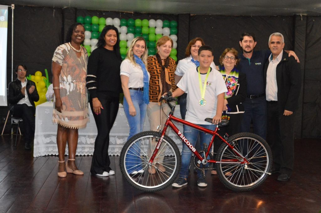 Os estudantes que se destacaram no Concurso receberam certificado de participação. Os três primeiros colocados de cada nível (I para 4º e 5º ano; II para 6º e 7º; e III para 8º e 9º anos) foram premiados com medalhas, bicilcetas e quantias em dinheiro – estas últimas doadas pelo Sicoob. Antes da premiação a cantora gospel Bruna Firmo interpretou a música “Conquistando o impossível”, em homenagem aos alunos.