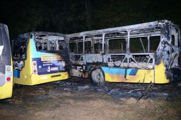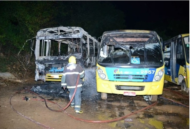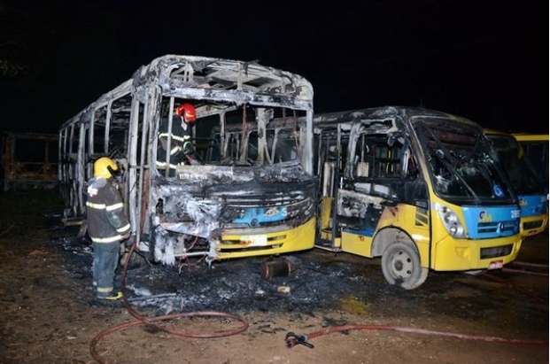Três ônibus da empresa Coletivos União pefaram fogo na madrugada desta terça-feira (29).