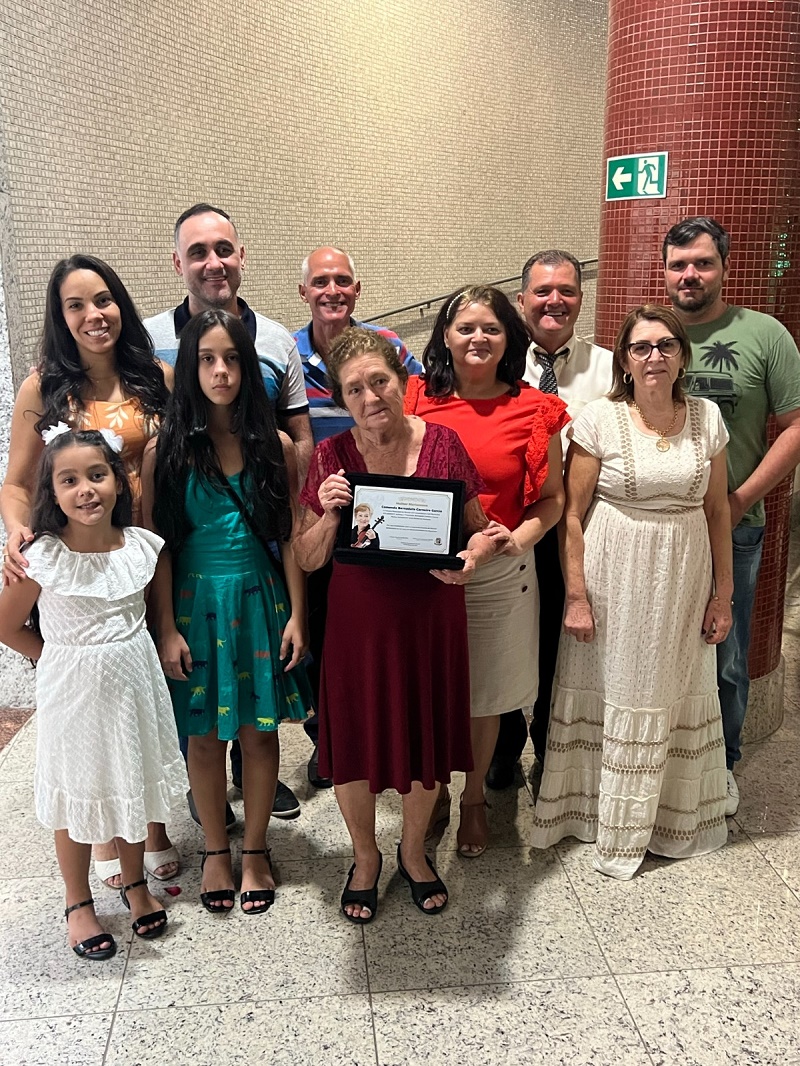 “Estou honrada de estar aqui e só tenho a agradecer a Deus, em primeiro lugar, e ao meu filho verador Delsinho Amaro e dizer que é com satisfação e imensa gratidão que recebo a Comenda Bernadete Carneiro Garcia”.  Iva Amaro