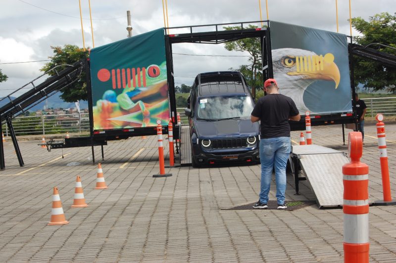 Com uma pista Off Road, os presentes puderam participar do Test Drive. Testando todas as funcionalidades do Jeep Renegade e Compass.