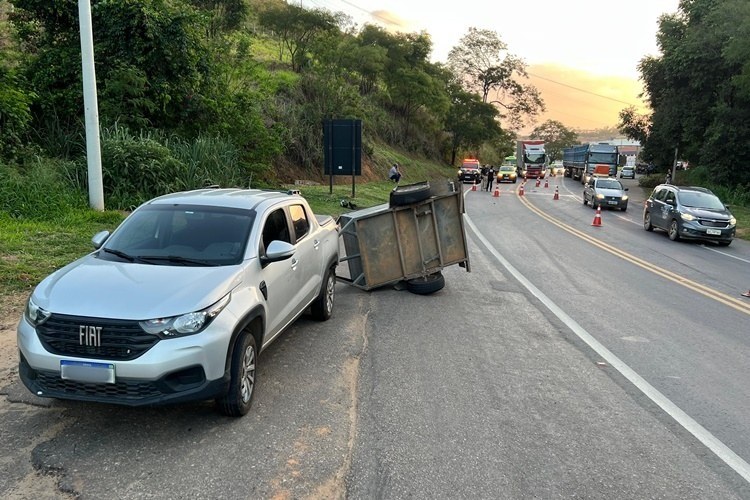 Um grave acidente foi registrado na tarde desta quinta-feira (20) na BR-116, na saída para o bairro Bela Vista, em Muriaé. A Polícia Rodoviária Federal foi acionada após a colisão entre uma motocicleta e um automóvel que seguia sentido Manhuaçu. De acordo com as informações colhidas no local, a motocicleta, que trafegava na direção contrária, acabou atingindo a carretinha acoplada ao veículo.