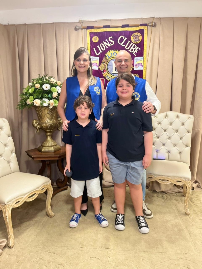 Presidente do Lions Clube Muriaé Centro, Dr. Fabiano Vaz, sua esposa Raquel Antunes com os filhos