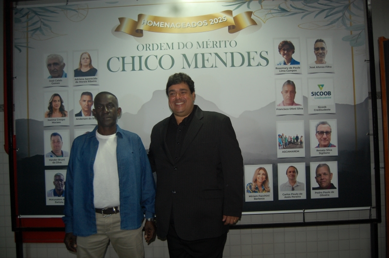 Na noite desta quarta-feira (4), Matusalém Adão Batista foi homenageado com a outorga da Ordem do Mérito Chico Mendes, em reconhecimento à sua trajetória dedicada à preservação ambiental em Muriaé. A indicação foi feita pelo vereador Christian Tanus Bahia, durante cerimônia promovida pela Câmara Municipal de Muriaé, no auditório do Centro Universitário FAMINAS.