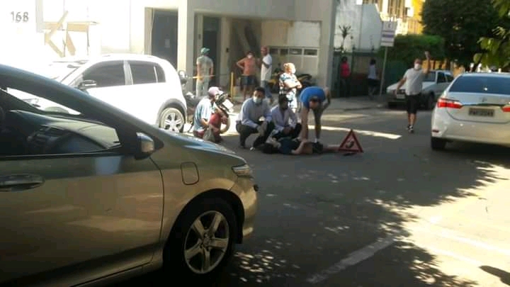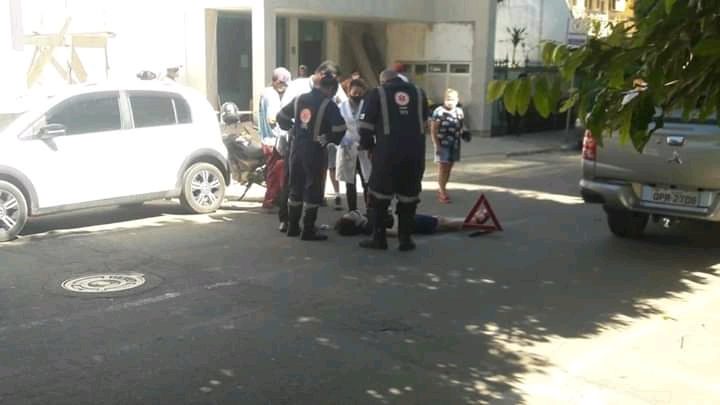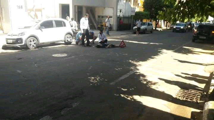Uma mulher foi atropelada por uma motocicleta na rua São Pedro, no Centro. O acidente ocorreu durante por volta das 9h desta segunda-feira (18).
