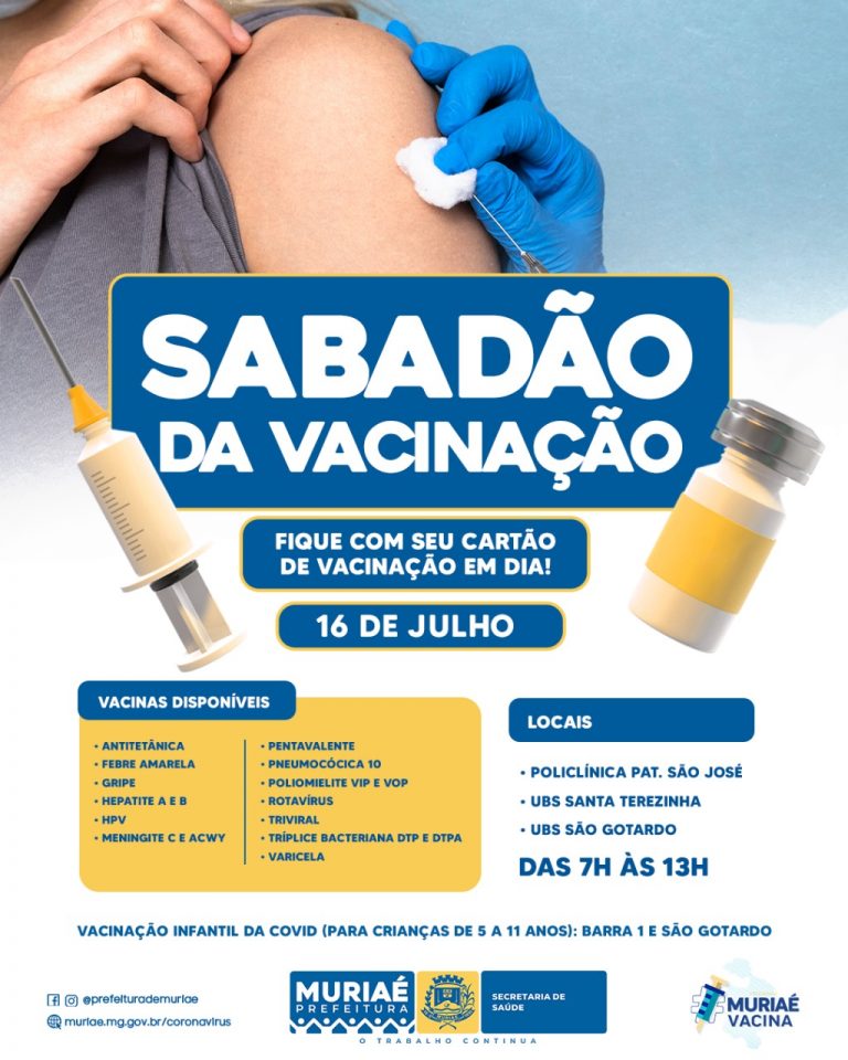 Neste sábado acontece mais uma edição do Sabadão da Vacinação.