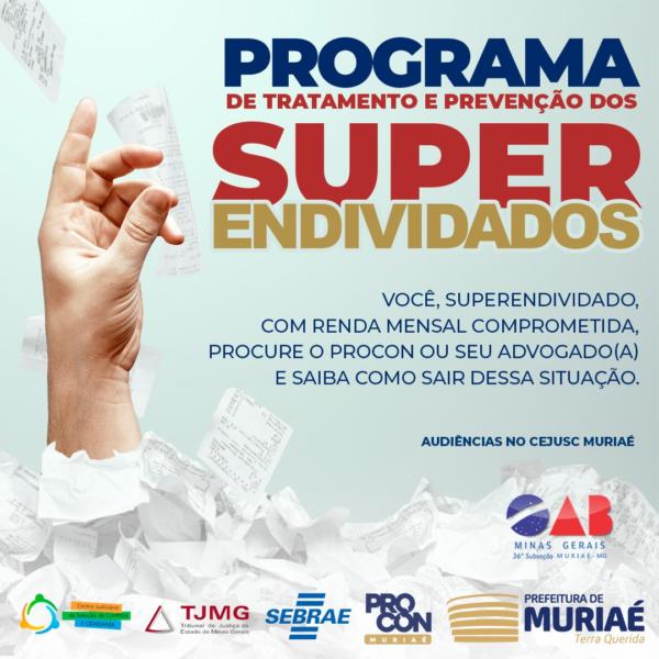 Desta maneira, o juiz Dr. Juliano Carneiro, juntamente com o diretor geral do Procon Muriaé, Dr. Cristiano de Assis, estão se reunindo com representantes da Câmara de Dirigentes Lojistas, Associação Comercial Empresarial, Sebrae, OAB, e as secretarias municipais de Desenvolvimento Econômico e de Governo possam implementar em Muriaé o Programa de Tratamento e Prevenção ao Superendividamento.