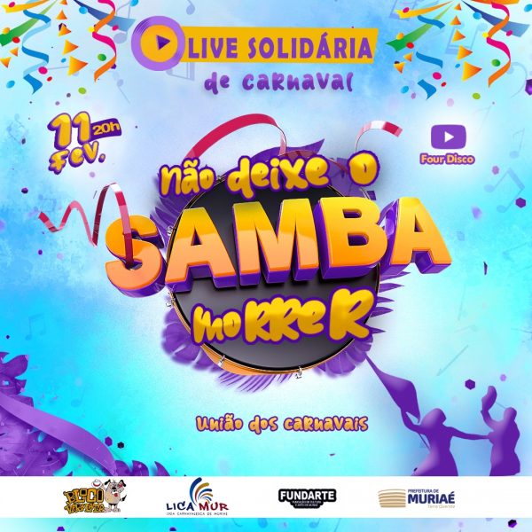 A proposta é reunir as tradicionais escolas de samba da cidade – Papagaio, Marambloco, Santa Terezinha, São Joaquim e Canarinho do Samba, com o maior bloco de rua, Vira Lata em um evento online transmitido para todo o mundo, seguindo os protocolos de isolamento social. A live será transmitida no canal do YouTube da Four Disco, e terá muito samba-enredo, clássicos do carnaval anos 1.990/2.000, marchinhas e hits atuais.