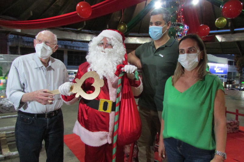 Dando continuidade a solenidade, o Prefeito entregou a chave da cidade para o Papai Noel e cortou a fita de inauguração do espaço recreativo de Natal. O coreto se abriu a população e foi palco do encontro das crianças com o Papai Noel, local emoldurado por símbolos natalinos.