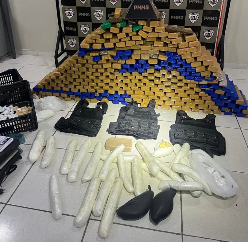 No Distrito de Vermelho, em Muriaé, nessa terça-feira (30), a Polícia Militar de Minas Gerais (PMMG), por meio da 97ª Cia. Tático-Móvel, do 47º BPM, da 4ª RPM, realizou uma operação que culminou na prisão de um homem de 43 anos e com ele foram apreendidas 334 barras de substância análoga à maconha, 18.294 papelotes de substância análoga à cocaína, uma barra de substância análoga à pasta base de cocaína, R$9.073,00 em moeda corrente, três capas de coletes balísticos, duas balanças, sendo uma de grande capacidade (10kg) e uma de precisão, anotações que configuram a contabilidade do tráfico, um aparelho DVR e material para embalar drogas.
