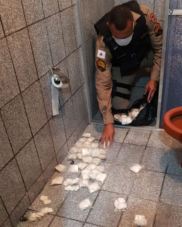 A Polícia Militar apreendeu 1.600 papelotes de cocaína, na tarde dessa quarta-feira (09). A droga estava dentro do box do banheiro em uma residência no bairro Alterosa.