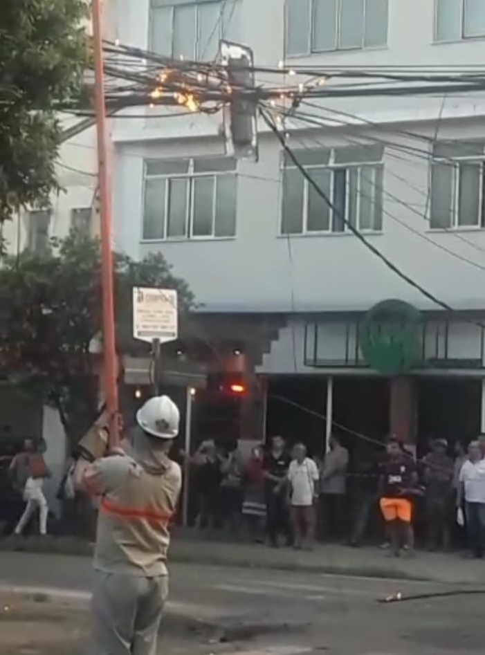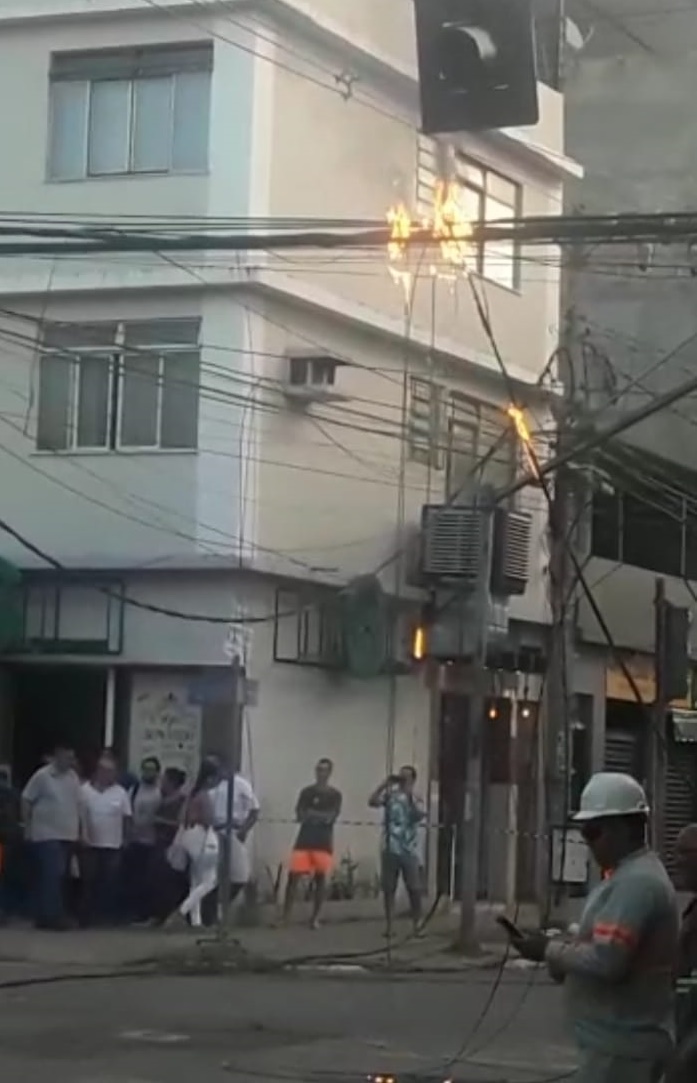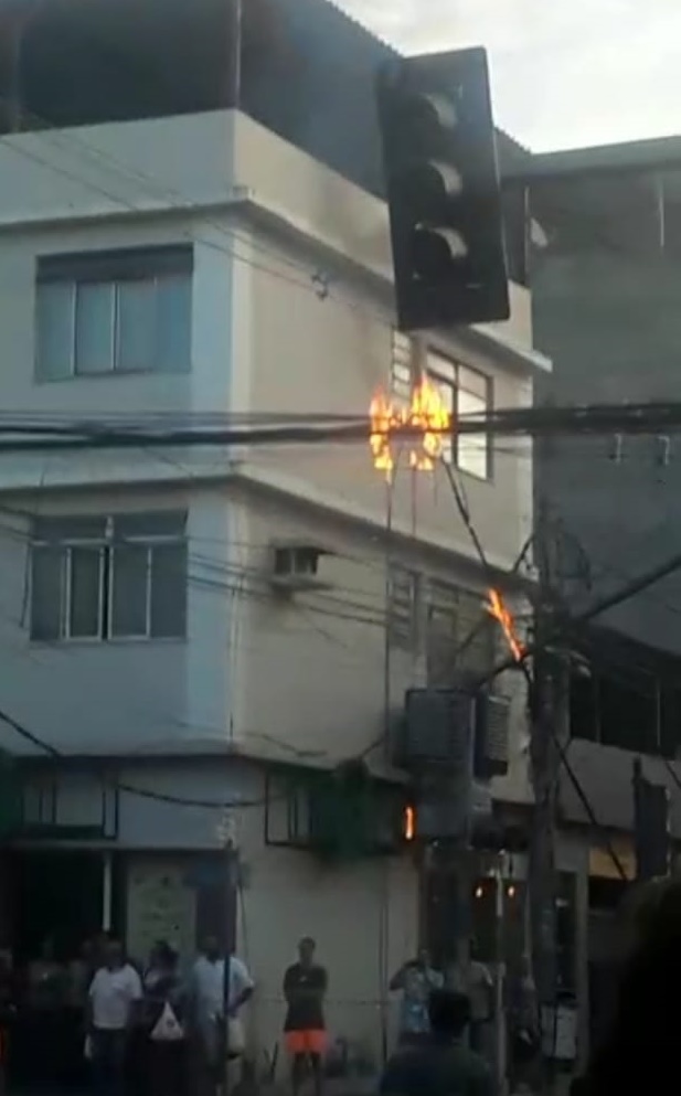 Um poste localizado na rua Oswaldo Cruz no bairro da Barra, pegou fogo na tarde desta quinta-feira (02), assustando os moradores.