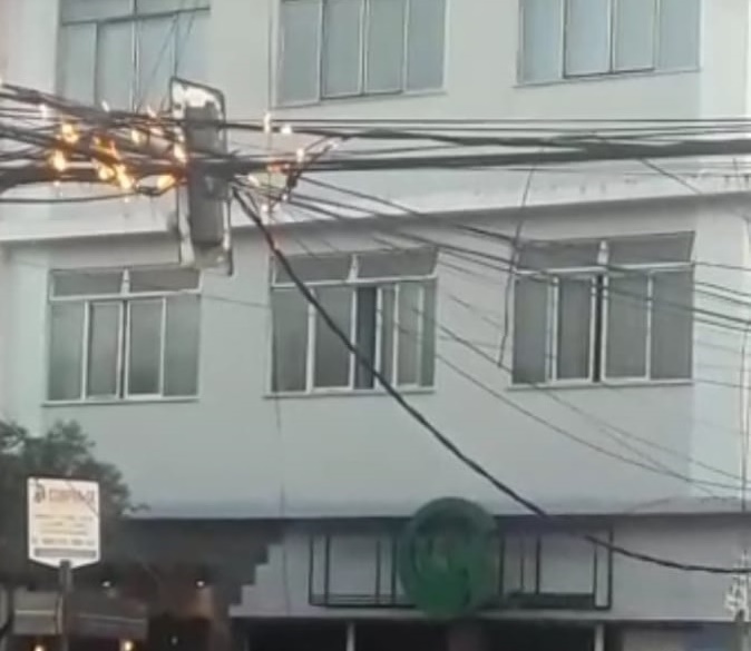 O incêndio que atingiu fiações eletricas, de telefonia e internet.