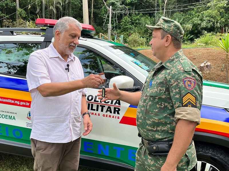 Uma nova viatura foi entregue nesta manhã pelo prefeito Marcos Guarino para a Polícia Militar do Meio Ambiente, em breve solenidade realizada no Horto Florestal de Muriaé.
