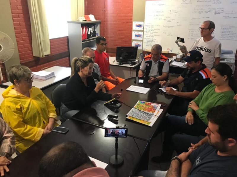 Ao lado do coordenador da Defesa Civil, Leandro Cunha; da diretora do Demsur, Maria da Consolação; dos secretários Vanessa Magalhães Azeredo (Desenvolvimento Social); Fernando Levati (Agricultura); Vanderléia Castro (Governo e Administração); assim como do procurador do Município, Dr. Eduardo Marge, e do diretor do Demuttran, Mário Brambila, explicou a situação grave que se encontra a cidade e que já recebeu telefonemas do governo de Minas Gerais que monitora a situação na Zona da Mata, em especial à cidade de Muriaé.