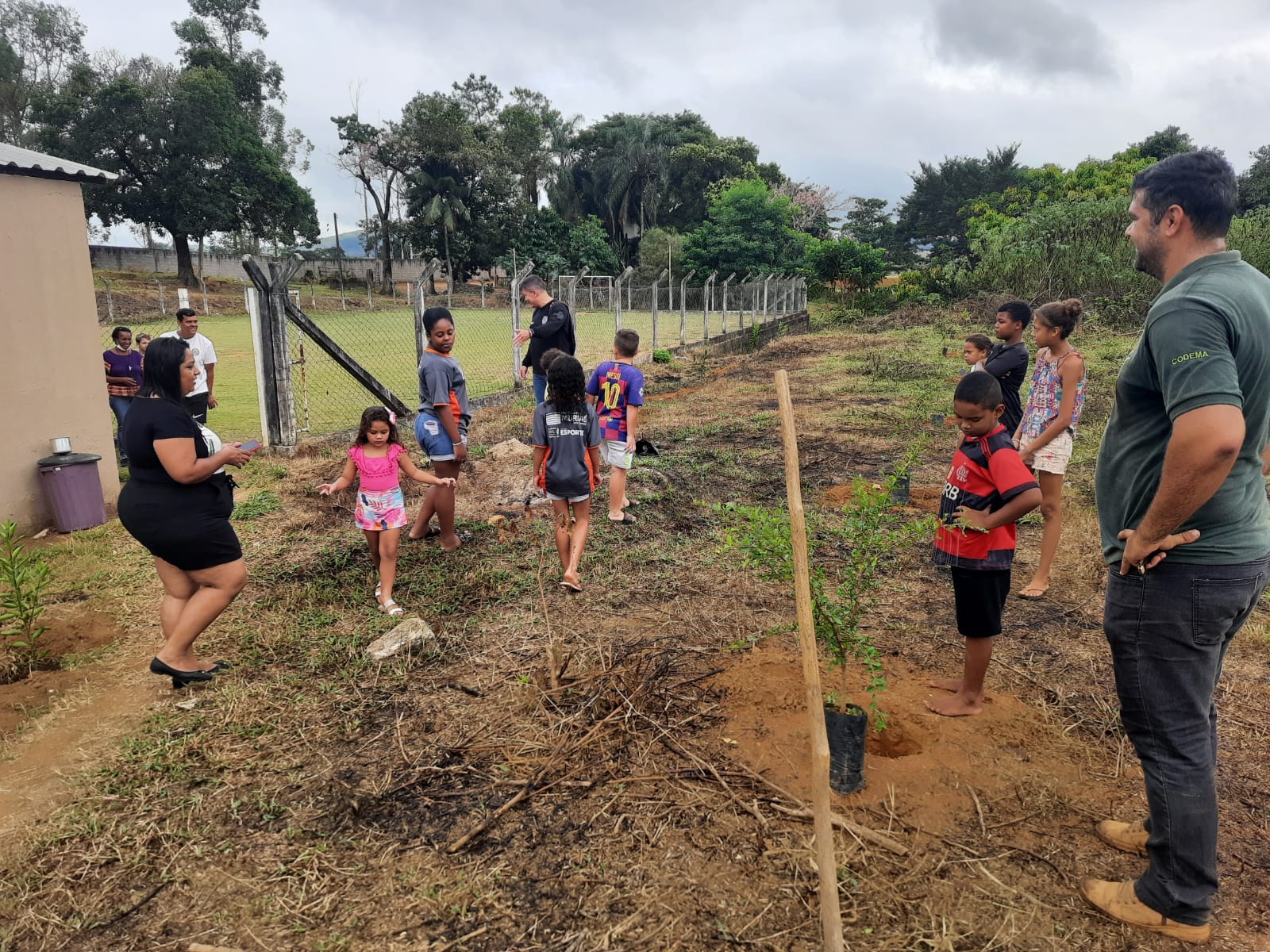 A coordenação de Meio Ambiente preparou o local para receber o plantio de laranja, limão, mexerica, pitanga, acerola, manga, goiaba, caju, graviola, jambo e jaca.