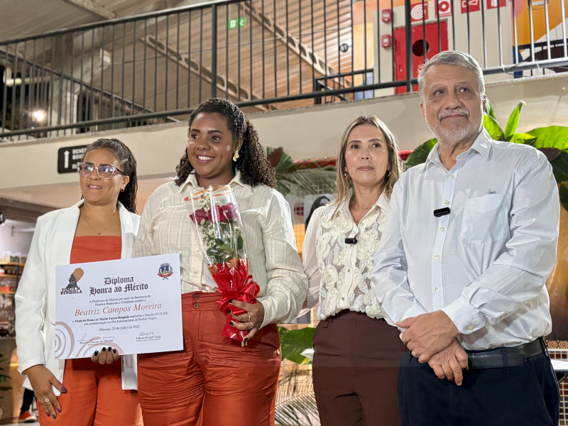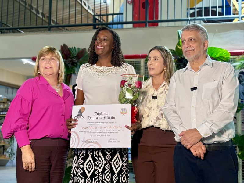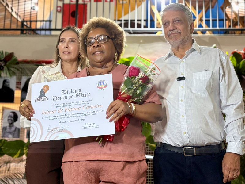 A cerimônia foi encerrada com falas emocionadas da homenageada Inimar de Fátima Carneiro, da secretária Tatiana Rangel Viana e do prefeito Dr. Marcos Guarino, que destacaram a importância de políticas públicas voltadas para a igualdade racial, os direitos humanos e o reconhecimento da memória histórica das mulheres negras.