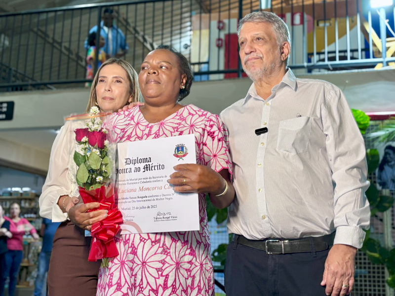 A Prefeitura de Muriaé, através da Secretaria Municipal de Direitos Humanos e Cidadania, realizou a cerimônia da 3ª Edição da Honra ao Mérito “Tereza de Benguela”, uma homenagem que reconhece e valoriza mulheres negras que se destacam por suas trajetórias de vida, atuação profissional, engajamento social e contribuição para a construção de uma cidade mais justa e inclusiva.