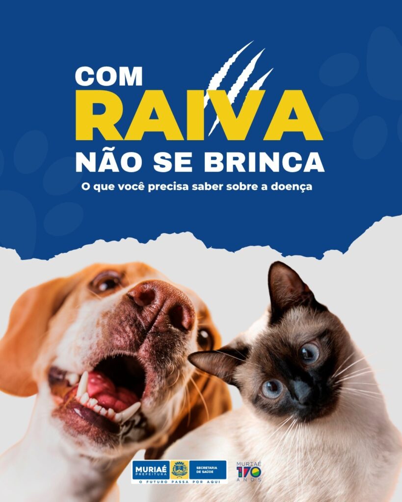 Com o lema “Com raiva não se brinca”, a Prefeitura de Muriaé, por meio da Secretaria Municipal de Saúde, lança a Campanha de Vacinação Antirrábica 2025, que começa no dia 04 de agosto nas áreas rurais e distritos, com o Dia D na cidade marcado para 09 de agosto (sábado).