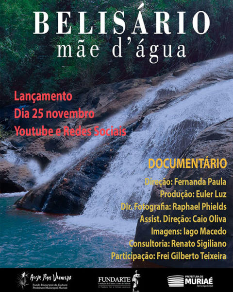 “Belisário – Mãe d’água” é um documentário aprovado pela Lei Municipal Alcyr Pires Vermelho (Fundarte) que apresenta entrevistas e reflexão em imagens do cotidiano dos moradores do distrito, ressaltando a riqueza hídrica existente no município. O material que narra todo o comportamento de um povo e vislumbra riquezas naturais da terra será lançado no próximo dia 25 nos canais do YouTube e em redes sociais, a partir de 17h.