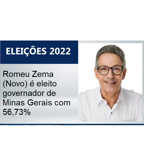 Romeu Zema concorria à reeleição ao governo de Minas pela coligação PP/Podemos/Solidariedade/Patriota/ Avante/PMN/AGIR/DC/MDB/Novo. Formado em administração de empresas pela Fundação Getulio Vargas (FGV), é empresário de 57 anos. Sua primeira disputa eleitoral foi ao governo do estado em 2018. O vice na chapa é o Professor Mateus, 41 anos.