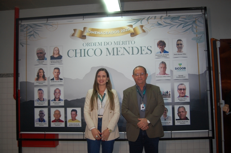 O Sicoob Credisudeste foi homenageado na noite desta quarta-feira (4) com a outorga da Ordem do Mérito Chico Mendes, em reconhecimento ao seu trabalho em defesa do meio ambiente e à promoção do desenvolvimento sustentável. A indicação foi feita pelo vereador Mário Brambila, e a honraria foi entregue ao Presidente da Cooperativa, Paulo Alexandre de Oliveira Carvalho, durante solenidade realizada no auditório do Centro Universitário FAMINAS, em Muriaé.