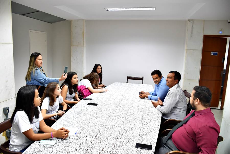 Presidente e vereadores recebem estudantes antes da sessão