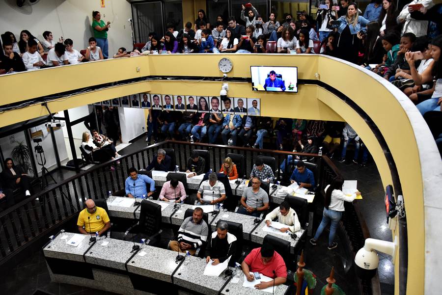 Tem se tornado rotineiro um grande número de estudantes participando das sessões da Câmara neste ano de 2022. Um ação que vem sendo incentivada pela gestão, que, inclusive promove interações diversas com os alunos, como na última sessão onde um grupo da Escola Municipal Gilberto José Tanus Braz se reunião com os vereadores, antes da sessão para tirarem suas dúvidas sobre a Câmara e as atividades dos vereadores.