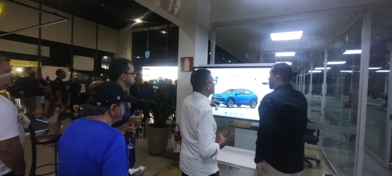 O lançamento foi marcado pela apresentação do design moderno e arrojado do Novo Tera, que se destaca pela personalidade e sofisticação. O modelo traz diferenciais como lanternas traseiras em LED, rodas de liga leve diamantadas e o teto bicolor na cor preto ninja, que reforça sua proposta de romper com o convencional.